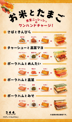 沖縄のソールフード ポークたまごサンドや、 ご飯とたまごで包めば何でも旨い。 をモットーに、ご飯の友を包んでいます。
