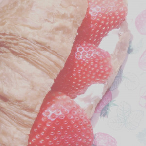 約20センチのクロワッサンに生クリームたっぷりとフルーツをサンドしています。当店人気商品で数量限定商品です! バナナチョコ、いちご、マンゴーからお選びください。