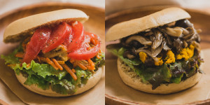 手軽に食べれるヘルシーなベーグルサンド! 挟むベーグルはほうれん草、プレーン二つの中からお選び出来ます!
