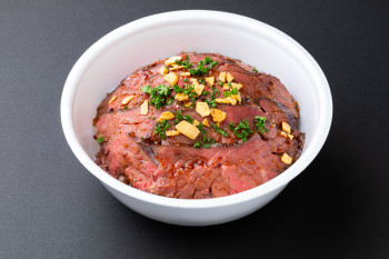 スタグルでも人気の「レアステーキ丼」を今回「炙りステーキ丼」としてリリース!! ボリュームたっぷりの一品をどうぞ