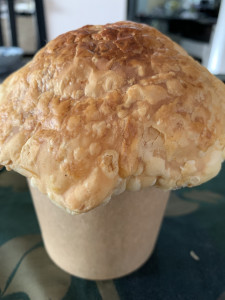 パイの帽子を被ったクリームスープです。スープもパイも常に進化しています。 (きのこスープ🍄は秋冬メニューになります。)