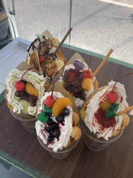 | 商品 | トルタドリア、きのこスープ、フィリピンBBQ..かき氷、エッグワッフル、クラフトビール |