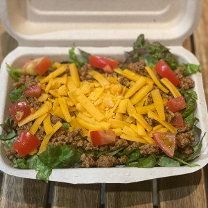 セールスコピー:沖縄本場の味をそのまま再現した本格タコライスです!シンプルですがチェダーチーズを添えてコクある一品にしました!