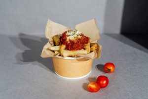 メニューはじゃがいもの旨みをそのまま味わえるオリジナルプレーンから濃厚なミートソースにゴルゴンゾーラチーズ、ヴィーガンマヨなどをご用意しています。ポテトと相性抜群の砂糖や動物性製品不使用のスムージーもご用意しております!