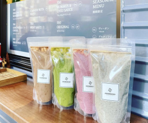 砂糖、着色料、動物性製品を一切使用していないスムージーです。小さい赤ちゃんでも安心してお飲みいただけます!水や氷も使わないので濃厚なスムージーです。ミックスベリー、グリーン、黒ゴマ、チョコ&ナッツの4種類パウチに入れてご用意しております。
