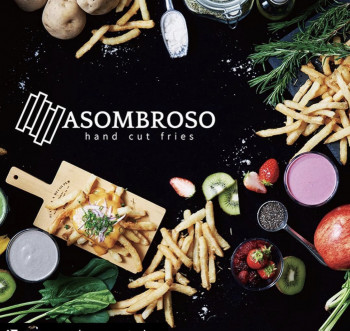 アソンブロッソとはスペイン語でamazing!素晴らしいという意味。 ハンドカットフライズを口にした時、お客様に『素晴らしいね!』と言っていただけるように。そして美味しいの笑顔があふれるように願っています!