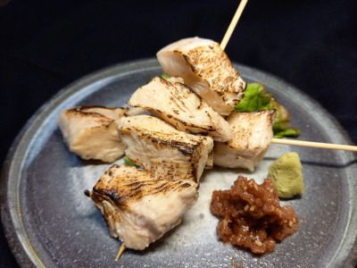 鳥胸肉を真空低温調理で柔らかくしっとり仕上げたチキンを炙り香ばしさが癖になる逸品。 ソース[たれ]は数十種類の中から二種類選べます。