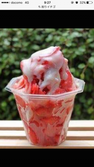 凍らせたイチゴ削った100%イチゴのかき氷です。