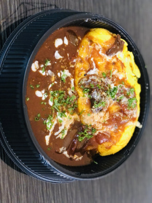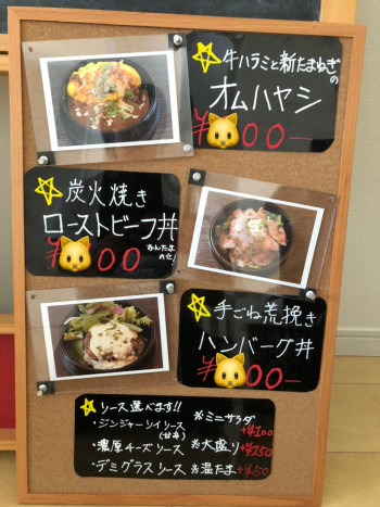 | 提供メニュー: | 炭火焼きローストビーフ丼、オムハヤシ |