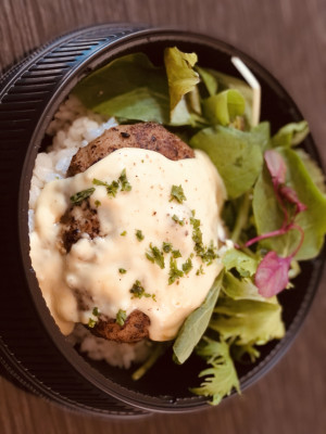 ゴロっとしたお肉のジューシーなハンバーグに濃厚なチーズソースをお楽しみあれ♪