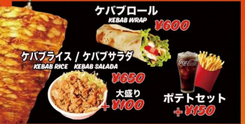 | 提供メニュー: | ケバブ、お弁当対応可能(生姜焼き、ハヤシライス、ローストチキン)、アフリカ料理、スムージー、ソフトドリンク、等 |