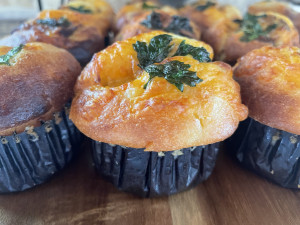 Camp×Campのオリジナルマフィンです。パイナップルとミルクで丁寧に煮込んだ角煮をマフィンに閉じ込めました。たっぷりのチェダーチーズとホワイトカレーのスパイシーな香りがたまらない絶品マフィンです。