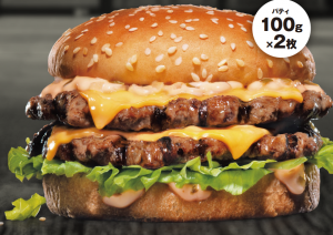 オージービーフ、チーズを使用したボリューム満点のハンバーガー。 ほのかな酸味とクリーミーな味わいが特徴のサウザンソースを使用しております。 大変好評で実店舗でもキャンペーンをする程の人気のハンバーガーです。