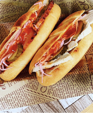 ポークとチキンの2種類があり、ピクルスの相性が抜群!ベトナム産のピリ辛チリソースが味の決めてです。(辛さは調節できます)お好みでパクチーもお付けいたします。 サクサクのソフトフランスパンがベストマッチ!CHUMイチ押しメニューです。