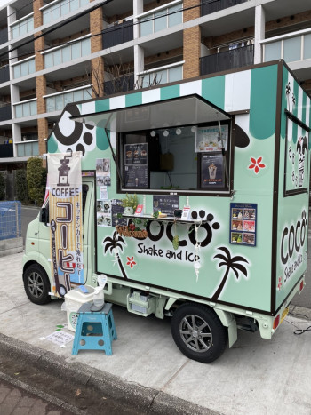COCOのキッチンカーは軽トラなのでスペースは最小限で大丈夫です。 イヌがトレードマークなのでお子様受けも良いです。