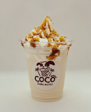 こだわりの自家製ピーナツアイスクリームを使ったピーナツシェイクです。 甘さを抑えたホイップクリームとピーナツクランチ、キャラメルソースが美味しさを引き立てる人気商品です。