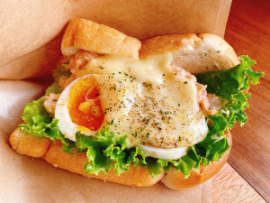 パンチのあるソースで味付けをしたベーコンと新鮮なレタスにトマト。チーズとの相性は間違いなしです。ぜひご賞味ください!