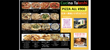 cucina TakeshiのPIZZAは400℃石窯で2分で焼き上げるので、外側はカリッと中はモチッとします。 さらに自家製トマトソースに、特製の生地を使用しているので、持ち帰りで冷めても固くならず時間が経っても耳までモチモチで美味しく食べられます