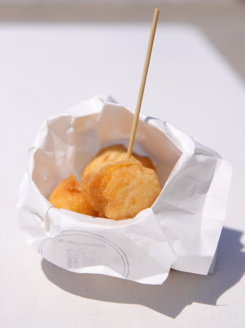 高知の朝市で行列のできる芋天を再現! 現地から取り寄せた芋天粉と土佐紅金時を使用しています。 ほくほくとした甘い芋天はおやつにぴったり!