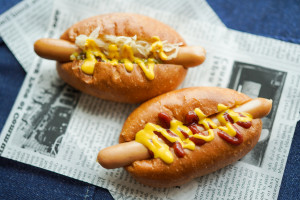 19cmホットドッグにもりのこむぎオリジナル ホットドッグバンズを挟む