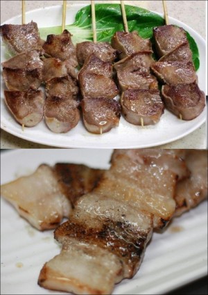 熱々の鉄板で焼いた肉厚な串焼きです!