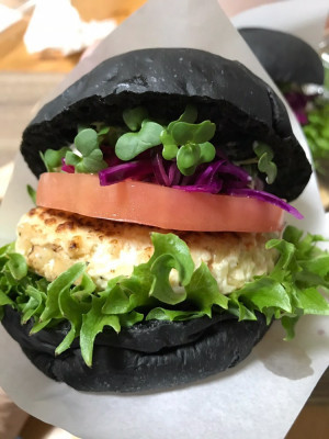 食べる炭をふんだんに使用し、デトックス効果のあるヘルシージャンクフードバーガー。