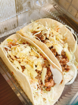 沖縄出身のシェフが、10種類以上のオリジナルスパイスと牛タンを使用して一風変わったタコライス・タコスに仕上げました! 牛タンの食感そのままに、辛さが無いのでお子様でも安心して召し上がれます! トッピングはチーズやアボカド、温玉に、沖縄ならではのスパムまでご用意してます! 南国の味をぜひご賞味ください!