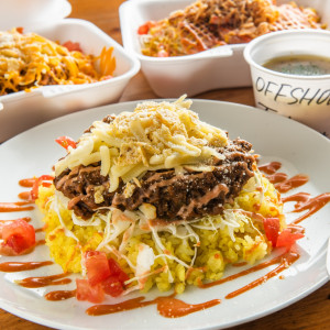 沖縄出身のシェフが、10種類以上のオリジナルスパイスと牛タンを使用して一風変わったタコライスに仕上げました! 牛タンの食感そのままに、辛さが無いのでお子様でも安心して召し上がれます! トッピングも温玉やアボカド、スパムなどをご用意! 辛いもの好きにはハラペーニョやサルサもあります! 南国の味をぜひご賞味ください!