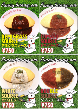ソースはレギュラーにデミグラス、トマト、ホワイトの3種類と、週替わり1種類の4つを用意しています。