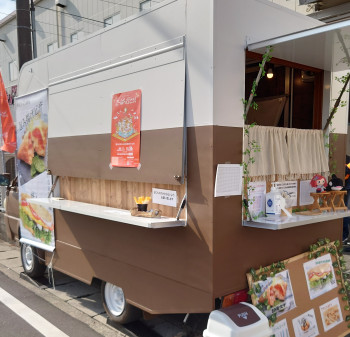 街中や公園にも合うシンプルで落ち着いた感じのキッチンカー。 出店場所に合わせてディスプレイしどんな所でもベストマッチ。 場所によっては後ろからの提供も出来ます。