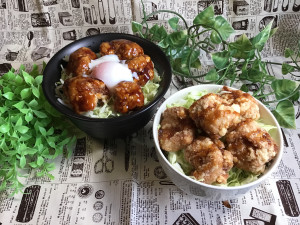 自家製の漬け込みダレで一日以上寝かせた、ジューシーで柔らかい鶏もも肉の唐揚げ。 衣は竜田風のサクサク食感。 そのままでも十分美味しくいただけますが、5種類のソースと週替わりで、味の変化をお楽しみください。 お米は新潟県産コシヒカリ100%を使用。