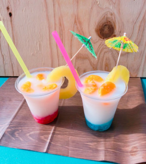 ゼリー、カルピスなど子供が大好きな物をたくさん使った映えるドリンクです。