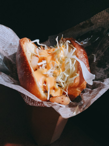 無添加・国産小麦100%で作った食パンを使用 ガーリックシュリンプとチェダーチーズソースのおいしい組み合わせ