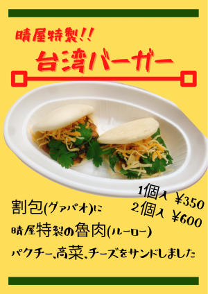 その場でもちもちに蒸したグアパオというパンに、ルーロー、パクチー、高菜、チーズをサンドした台湾風🇹🇼のバーガーです🎵✨✨