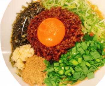 男性ダントツ一位人気のメニュー‼️🌟 唐辛子とピリ辛ミンチを太麺と合わせました。食べたらクセになる、汁なしまぜそばです🍜 ロケ弁現場では、某俳優さんも絶賛の1番人気メニューです✨✨✨ 沢山の具と太麺を絡ませてお召し上がりくださいっ♪ オススメの食べ方は、麺が無くなったあとに追いライス🍚🧚🏼 場所によっては追いライスセット販売してます!