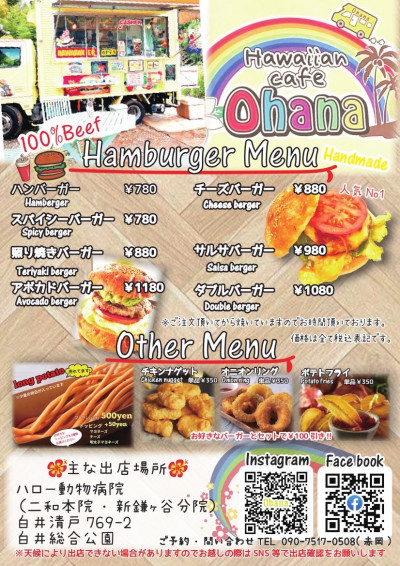 2019年12月にオープンしましたHawiian CafeOhanaです。 美味しい食べ物をお届けし、笑顔と共にたくさん方々と繋がりたい、 そして家族の用に愛情をもって皆さまと繋がれたら素敵だなと思い キッチンカーでOhanaを始めました。