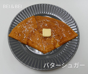 蘭王たまご、オリジナルクレープ粉、アーモンドプードルを使ったこだわりの生地にたっぷりのよつ葉バターを塗りこんでおります。シュガーとバターのハーモニーをお楽しみください。
