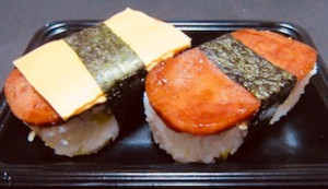 ハワイアンおにぎりのスパむす。 当店でも人気の一品です。 クリームチーズ、玉子焼き、梅しそ、アボカド、キムチがございます。