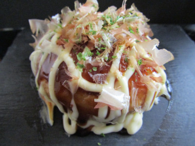 フード系で一番人気は「三陸海鮮ばくだんタコ焼き」です。 直径約8㎝重さ約200gのデカたこ焼き。 中にはプリプリのエビ、ホタテ、タコ、うずらの玉子、キャベツ、ネギ、あげ玉、紅ショウガを生地で焼きあげマヨネーズ、たこ焼きソース、青のり、削り節をトッピング。 一度食べたらクセになり、二度食べたらやみつきに、三度食べたら忘れられない! 是非、ご賞味ください。