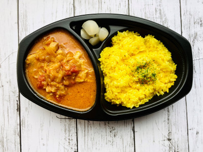 当店のランチメニューは元ホテルの調理師のオーナーが全て手作りしております。 中でもランチメニューでも一番人気の「バターチキンカレー」は野菜は玉ねぎ、フレッシュトマト、にんにくのみ。鶏肉は箸でもほぐれる程の柔らかさ。スパイスは独自の調合で、あえて辛さゼロで作りました。 野菜と鶏肉とスパイスの旨さをターメリックライスでお召し上がりください。