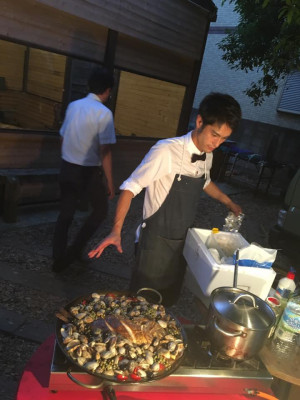 Hey!Riccioのケータリングの際、お客様に喜ばれるのは鯛を丸ごと入れたライブでのアクアパッツァ。パーティ会場その場で料理をするので見て楽しい、食べて美味しい、みんながHAPPYになります♪