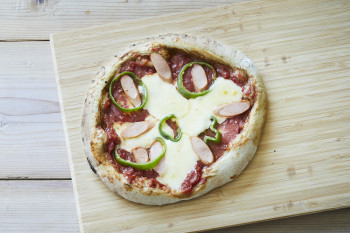 ありすポークウインナーの他、大船渡産のトマト・陸前高田産のピーマンをトッピング! 地元の食材をふんだんに使用しています♪
