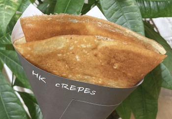 HK cREPEsの生地は水を使わずに牛乳で仕上げ、パリパリです! オススメはシュガバター。 熱々の生地にたっぷり染み込んだバター。シンプルながら人気者です。