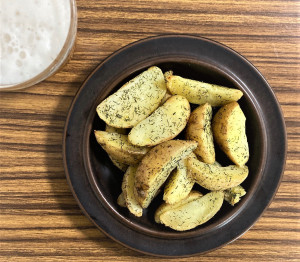 揚げずにベイクドしたポテトにスパイスとディルをたっぷり♪おつまみにも最適なディルポテトはお子様にも人気です。