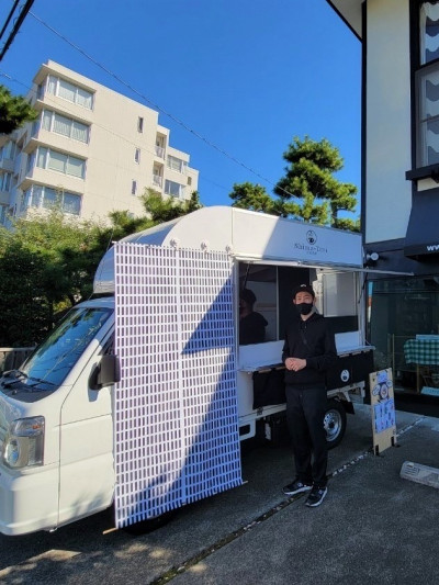 北欧酒場 Shima=Tori のキッチンカーはシンプルでスタイリッシュなデザインなので、どんなイベにもぴったりとマッチします♪軽トラタイプのキッチンカーは小さな限られたスペースにも出店が出来ます♪