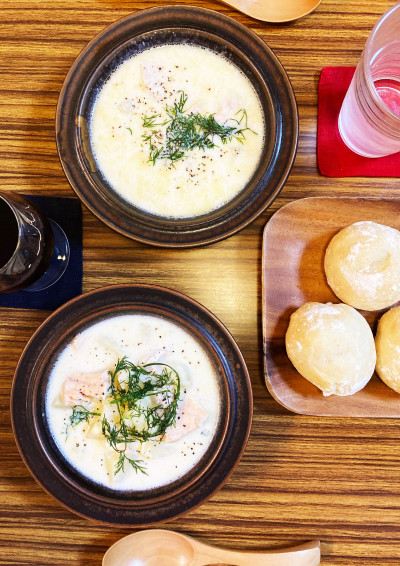 北欧フィンランドのソールフード フィンランド語で「lohikeitto」 (ロヒケイット)と呼ばれるサーモンスープは、家庭でもレストランでも屋台でも親しまれているフィンランドの定番料理です。 温かくて素朴なサーモンスープをライ麦パンと一緒にお楽しみください♪