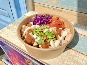 ボリュームたっぷりのご飯メニュー。 ポーク、チキン、ビーフ、ビーンズの中から好みの具材をチョイス。それぞれの具材に合わせたサルサがかかった、オフィスランチに大人気の一品。