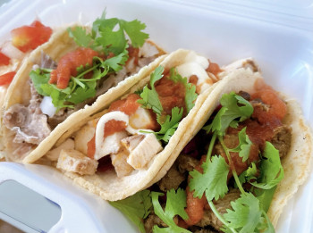 タコスは気軽に手で食べられるので、食べ歩きや野外イベントにぴったり! あらゆるシチュエーションにマッチする空色のキッチンカーが目印です!