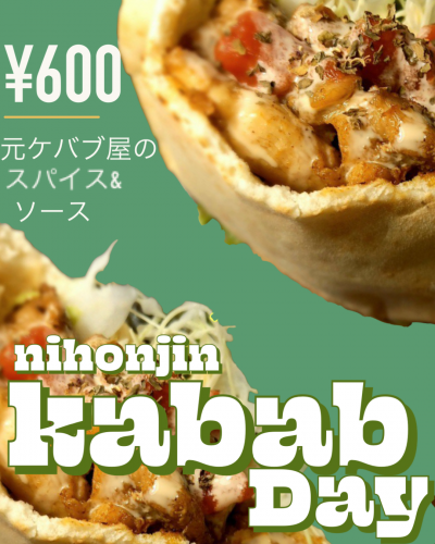 「ケバブ」という枠の中で、 新たなカテゴリーとして確立を目指す 【カバブJAPAN】(日本人ケバブ) 独自調合のスパイスと独創的なソースで仕上げたケバブサンドは、あなたのケバブ概念を押し広げます。