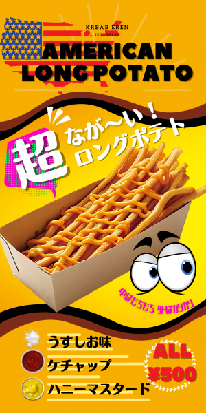 新登場のロングポテト!インパクトがあってイベントにピッタリです!こちらは数種類のソースが選べます。